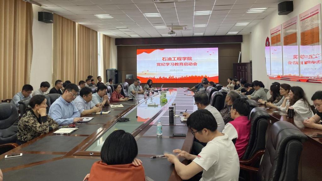 会上,张伟传达了《中共中央办公厅关于在全党开展党纪学习教育的通知》(中办发〔2024〕34 号)、《中共湖北省委办公厅印发〈关于在全省开展党纪学习教育的实施方案〉的通知》(鄂办发〔2024〕7 号)精神和公司党委《关于在全校深入开展党纪学习教育的实施方案》要求,通报了《石油工程公司党纪学习教育实施方案》具体内容。张伟带大家集中学习了《中国共产党纪律处分条例》第一、二、三章内容,并为全院师生讲授《把严明政治纪律和政治规矩摆在突出位置,正心正行,做合格共产党员》纪律党课。