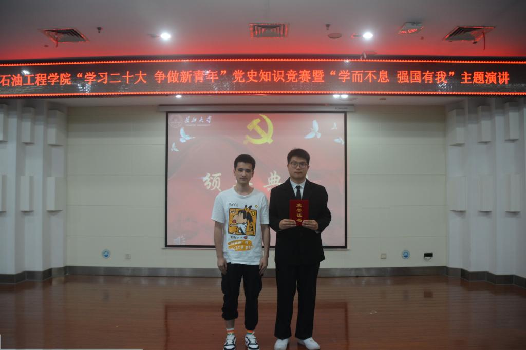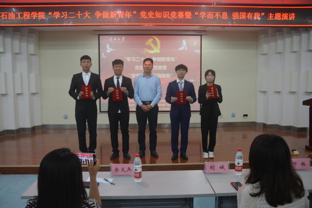 (通讯员 王雪瑶/文 刘科技 刘昕竹/文)2023年04月20日18:00,bevictor伟德官网于图书馆报告厅顺利开展“学习二十大 争做新青年”党史知识竞赛暨“学而不息 强国有我”主题演讲活动。公司党委副书记刘娥、油气井工程系教工党支部邓桥、余义兵,学工办史永波、郭冀宁、周晓峰、陈金建老师莅临本次比赛现场。