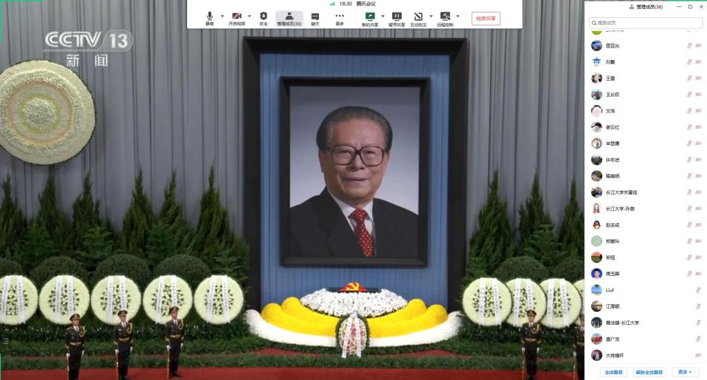 2022年12月6日上午10时,党中央、全国人大常委会、国务院、全国政协、中央军委在北京人民大会堂隆重举行江泽民同志追悼大会。bevictor伟德官网组织党员师生以线上集中或个人形式观看追悼大会现场直播,表达对江泽民同志的深切哀思。