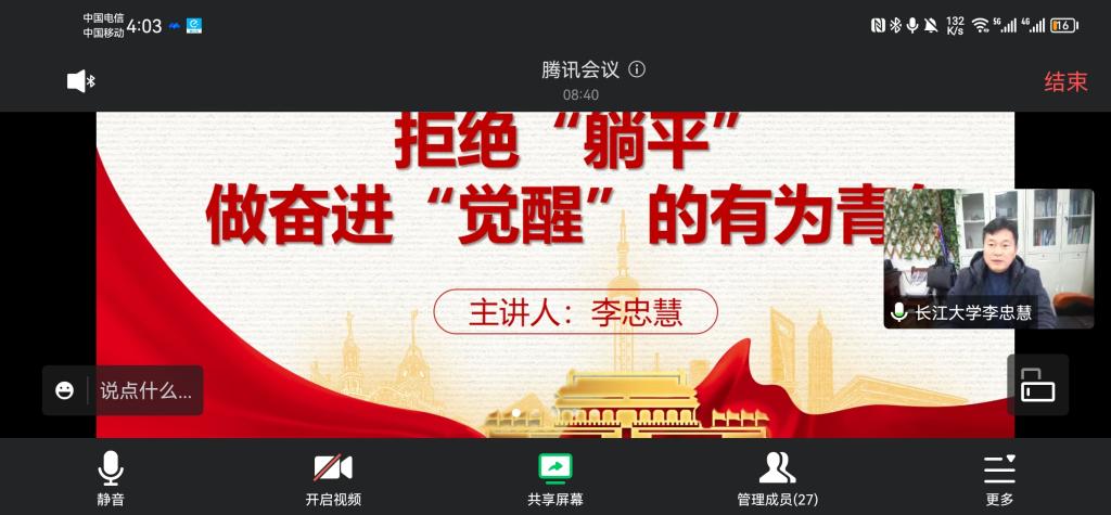 11月30日晚上,副经理李忠慧给油卓21901班员工讲授《拒绝躺平,做奋进觉醒的有为青年》主题党课。