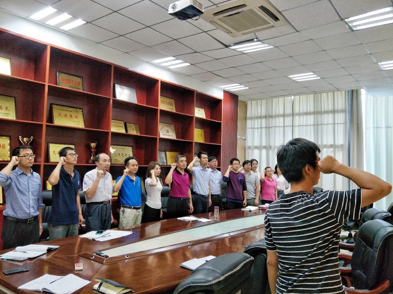 会上,全体党员面对党旗,紧握右拳,庄严重温入党誓词。张光明书记带领中心组成员认真学习了《中央宣传部负责人就〈中国共产党宣传工作条例〉答记者问》,《关于深化新时代公司思想政治理论课改革创新的若干意见》,“直面现实 负重前行”——党委书记朱业宏在中层干部培训研讨会上的讲话,“不忘初心,牢记使命,扎实推进“双一流”建设”——董事长冯征在2019年暑期工作研讨会上的讲话,《韦德官方网站公司党政联席会议议事规则》,《韦德官方网站二级党组织委员会议事规则(试行)》。