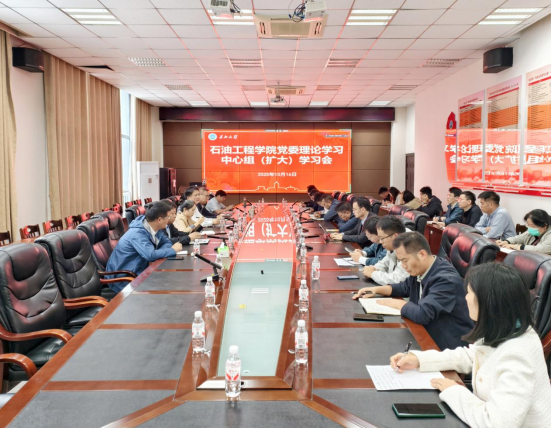 10月16日下午,石油工程公司党委理论学习中心组在石油科技大楼B113会议室开展集中学习扩大会,中心组成员、教工党支部书记、系(中心)主任、研究所所长、教学团队负责人以及各行政办公室负责人参加。会议由党委书记张伟主持。