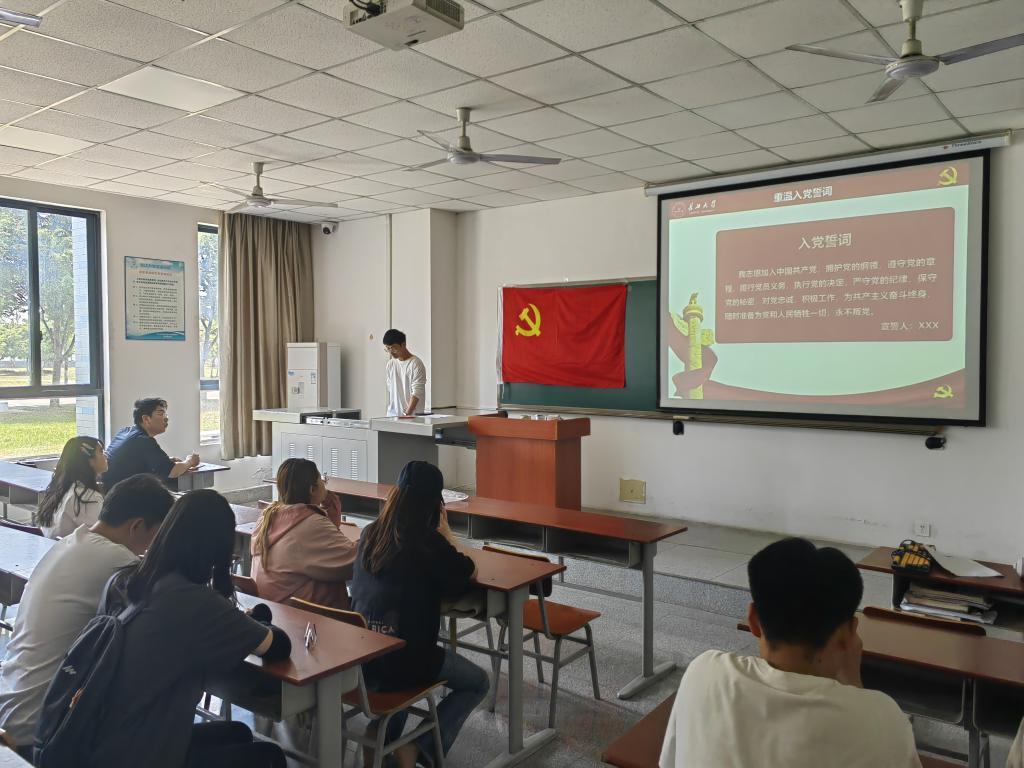 会议开始,唐凯同志带领支部全体党员面向党旗庄严宣誓,重温入党誓词,进一步深刻感悟党的初心使命。随后唐凯同志带领全体党员开展理论学习,集中学习《中华人民共和国保守国家秘密法》和《中国共产党党员网络行为规定》。徐敏同志给全体党员讲授题为《新时代新思想》的微党课。