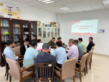 4月25日下午五点,油气井工程系教工党支部在石油科技大楼C524组织全体党员开展4月主题党日活动,活动采取线下与线上同步的方式进行,由支部书记高斐同志主持。