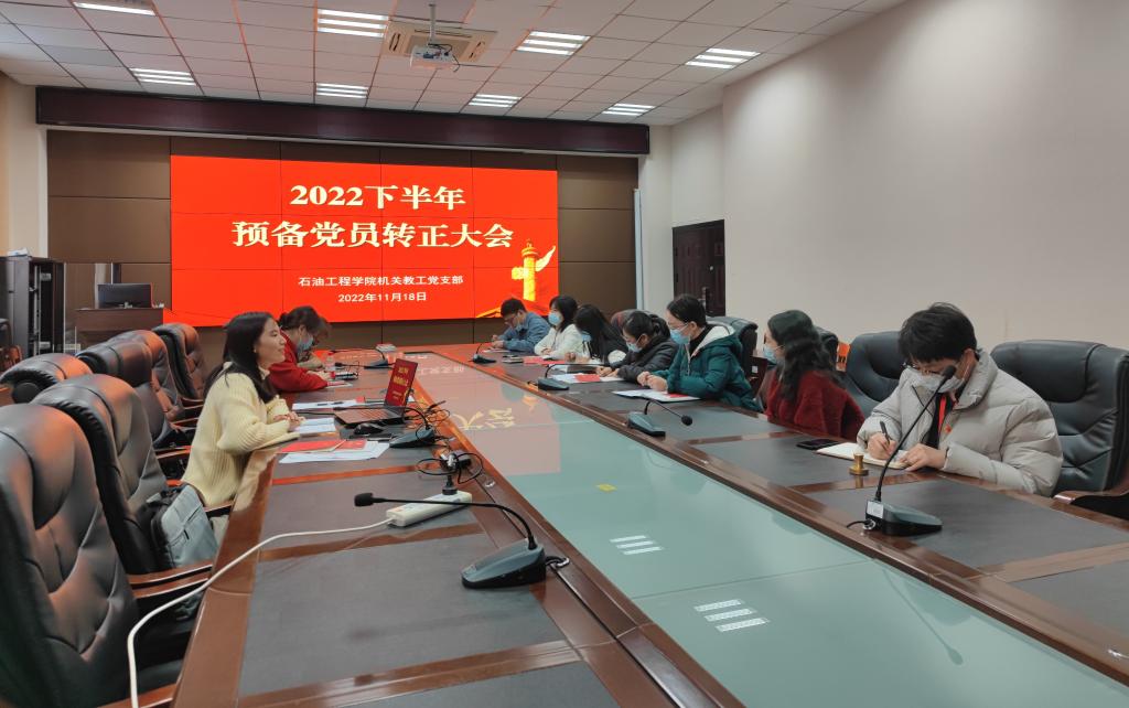 11月18日下午2时,机关教工党支部在石油科技大楼B113会议室开展11月主题党日学习暨预备党员转正大会,支部书记杨小玉主持。