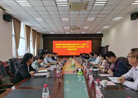 (通讯员:杜婷)5月7日下午,中国石油大学(华东)石油工程公司党委书记张展、副经理齐宁、党委副书记陈银吨一行7人到访公司,探讨交流团队建设、人才培养等方面内容。本次交流会由公司经理江厚顺主持,公司研究生院经理赵辉、公司党委书记张伟,副经理李忠慧、张引弟、杨波、张菲菲,党委副书记刘娥等院领导及公司教师代表出席本次会议。