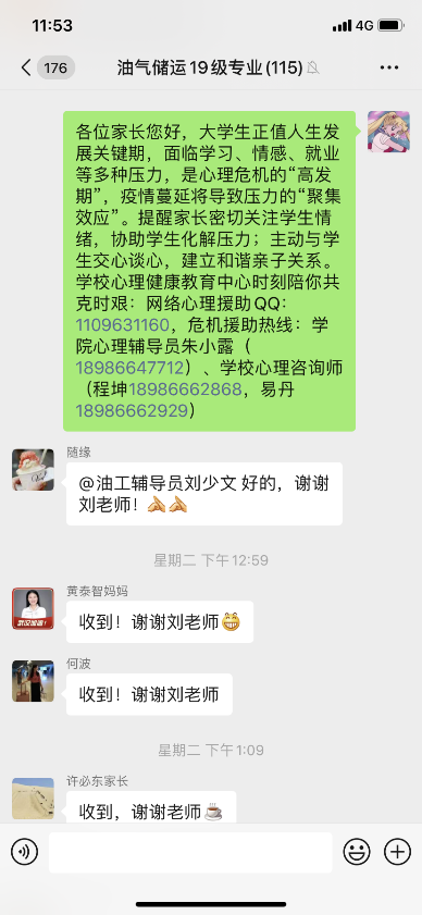 疫情期间,公司推进家校平台的搭建,家校携手保障员工居家安全。各辅导员在家长群、微信公众号平台、各班级群发布《bevictor伟德官网致家长的一封信》,再次提醒家长坚定服从政府在疫情期间的防疫政策,在未得官方通知前,员工不得返校,提醒家长在居家期间要培养良好亲子关系,关注员工身心健康,主动和员工谈心交心,科学理解员工心理情绪,并公开告知家长各年级辅导员联系方式一起公司心理健康教育中心求助方式。公司通过辅导猫以及班级QQ群等形式,对员工开展了心理健康教育工作,鼓励员工科学求助,助力员工在疫情期间化解压力。