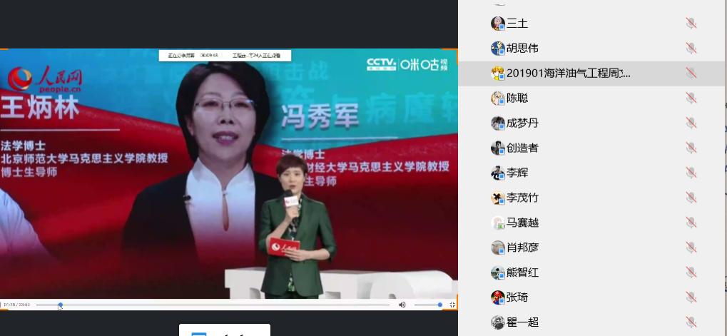 “课程中充实的内容、丰富的案例、生动的讲述,凸显了中国战疫的硬核力量,这是人民的力量,这是中国的力量。这堂课既是一堂强化理论认知、提升思想认识的、深刻而生动的理想信念教育课,更是一堂结合疫情优化教学内容、提升教学实效的思政教学示范课。”石油工程公司党委副书记刘娥说到。
