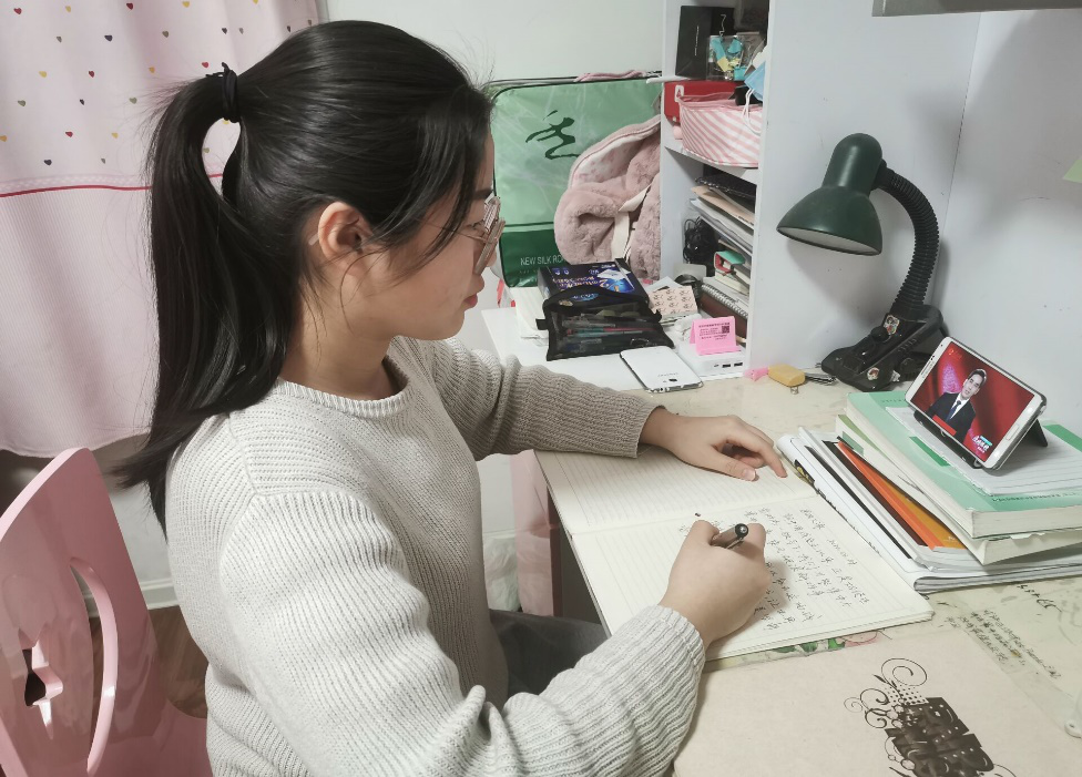 油工21901班陆奕茗的母亲是一名医护人员,她的母亲在华北石油总医院检验科工作,参加了抗击03年非典工作的艾军玲在今年正月初四便驻扎在了防控一线。陆奕茗在看完思政大课后和目前视频连线分享自己的感受,她说:灾情就是命令,防疫就是责任。医务工作者们奋斗在一线,与生命赛跑,与时间竞速,你们舍小家为大家,在这场战疫中,妈妈你们都是最美的逆行者,向你们致敬。我应该向你和疫情一线工作者们的学习,树立自己的人生观价值观,好好学习,长大以后用自己的力量建设我们伟大繁荣的祖国。