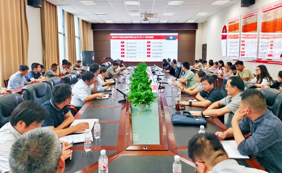 全院大会上,全体教职工集中开展了5月政治理论学习。张伟以“新时代高校教师职业行为十项准则”为主题讲授师德师风专题党课。她首先对准则各项内容进行了解读,并强调准则是教师职业行为的基本规范,师德师风是评价教师队伍素质的第一标准。全体教师必须坚定政治方向、恪守职业道德,真正把教书育人和自我修养结合起来,时刻自重、自省、自警、自励,自觉做以德立身、以德立学、以德施教、以德育德的楷模,为一流团队建设提供有力支撑。