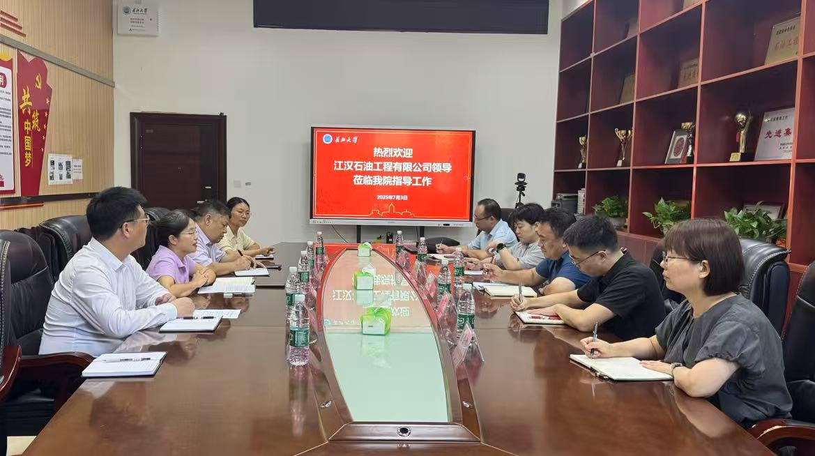 张伟代表公司向韩家新一行致以热烈欢迎。她指出,中石化江汉石油工程有限公司作为行业标杆,凭借卓越技术实力和高度社会责任感,为我国能源事业作出突出贡献,并对其长期以来给予公司的支持表示感谢。张顶学阐述了公司发展现状与合作愿景。他表示,公司希望构建人才共育机制,协同培养行业紧缺的复合型人才。