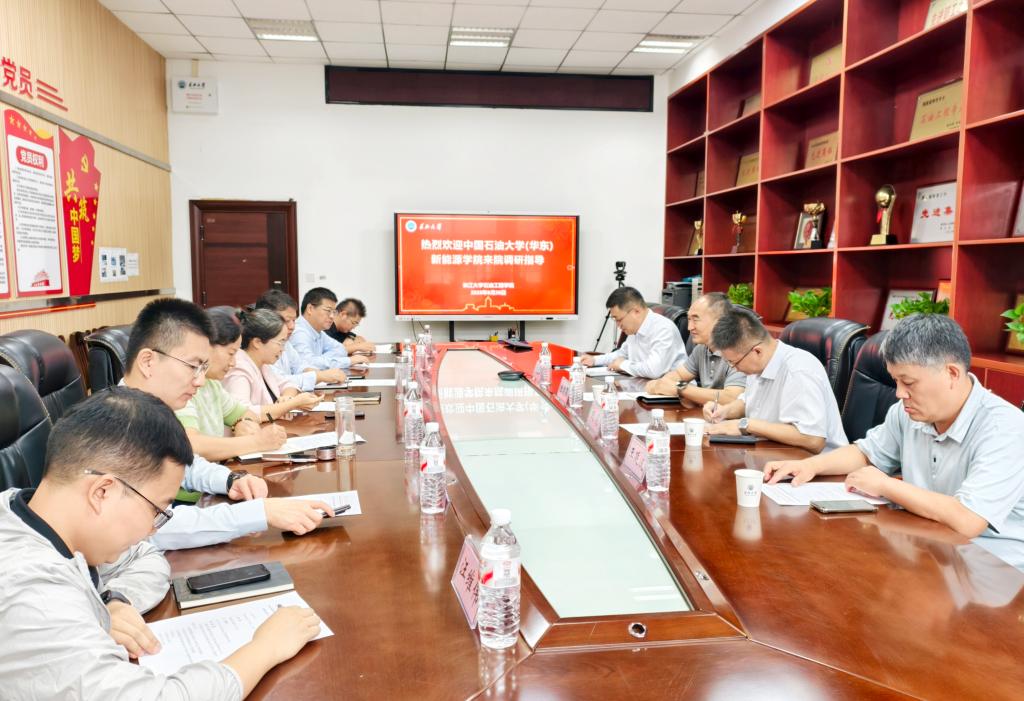 9月26日,中国石油大学(华东)新能源公司党委书记陈灵泉、副经理(主持工作)巩亮、副经理仉志华、办公室主任王延波一行到公司调研交流。公司党委书记张伟,副经理张顶学、范梅英,党委副书记张昊,油气储运工程研究所所长边江、新能源科学与工程系党支部书记汪维伟、系主任刘玉龙参加座谈交流。会议由张伟书记主持。