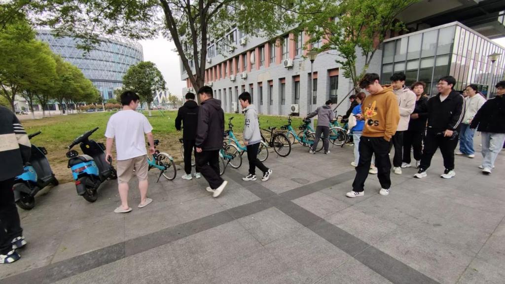 14时,550名志愿者准时集合在公司足球场。随后志愿者们迅速前往不同责任区。一部分志愿者前往食堂门口,另一部分志愿者前往教学楼前的停车区域在黑油志愿者支队成员的简要分工后,迅速投入到工作中。有的同学负责将倒下的自行车扶起,有的同学则负责将自行车按照规定的方向整齐排列。尽管天气不佳,但志愿者们的热情非常高涨,很快,原本杂乱无章的自行车停放区就变得井然有序。在他们的努力下,食堂门口的环境逐渐恢复了原有的清新与整洁。尽管天气不好,但同学们的积极性却丝毫未减,志愿者们相互鼓励,共同协作,不仅完成了任务,还在劳动中提高了集体归属感,锻炼了团队协作能力。