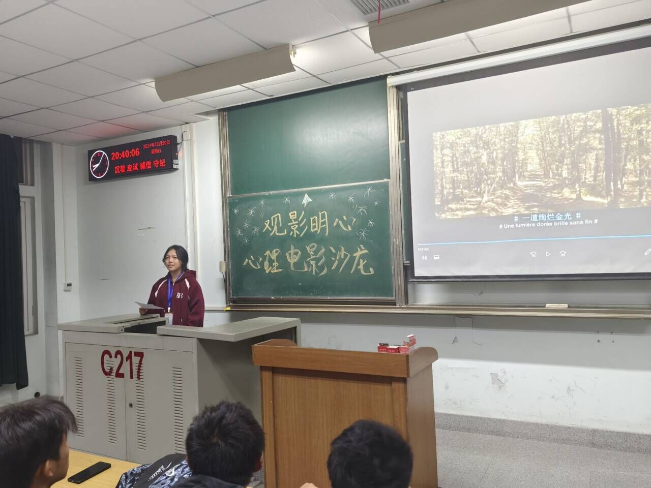 (通讯员 刘明晖 王天雨/文 舒晓宇 樊祥喆/摄)10月20日晚,油工公司在东校区13教c217举办公司心育特色活动——观影明心心理电影沙龙。本次播放的电影是《放牛班的春天》,由心育部的员工干部带领同学们在电影中感受音乐对心灵的治愈,活动由储运12401班苏辰宇主持,共70名员工参加。