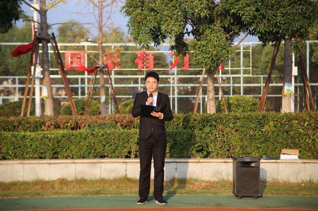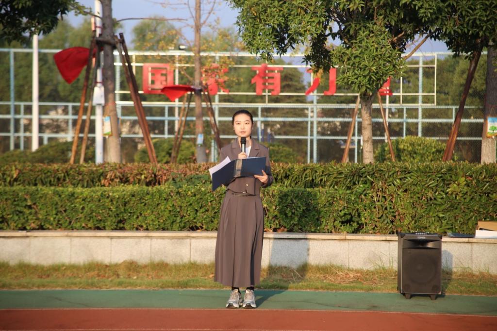 7时整,随着《欢迎进行曲》拉开升旗仪式的序幕,国旗护卫队的队员们身着整齐的制服,迈着铿锵有力的步伐,护送着鲜艳的五星红旗步入升旗台。伴着雄壮激昂的《义勇军进行曲》,国旗迎风展开,冉冉升起。所有人的目光不约而同地聚焦于那抹鲜红上,齐声高唱国歌,心中默念着对祖国的祝福。