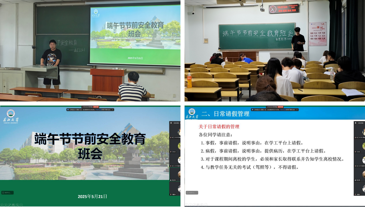 (通讯员 宋昱鑫)为进一步增强同学们的安全防范意识,保障假期安全,做好端午节期间的安全教育管理工作,bevictor伟德官网组织全体本科生和研究生召开端午节节前主题班会活动,本次班会旨在向同学们强调各方面的安全注意事项,预防各类安全事故的发生。