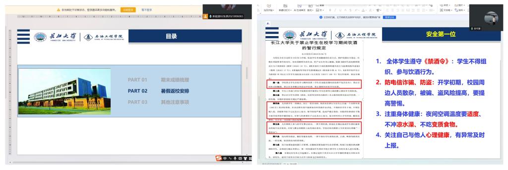 明确返校节点,做好行程规划。班会上,班主任对学业和返校事项作出系统安排,提醒同学们认真核查上学期成绩及学分获取情况,及时关注补考安排并做好复习准备。同时,会议明确了老生与新生的报到时间,要求员工合理安排行程、提前购票,严格按时返校。通过系统讲解和互动答疑,同学们进一步明确了返校流程和时间节点,显著提高了对新学期注册报到安排的认知度和配合度,有效避免了因信息不清导致的延迟返校情况。