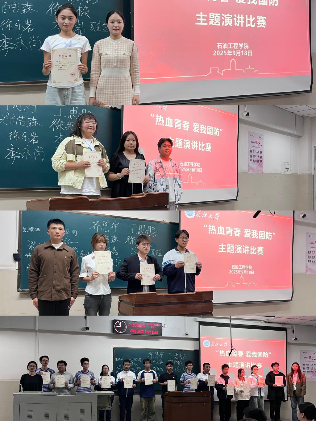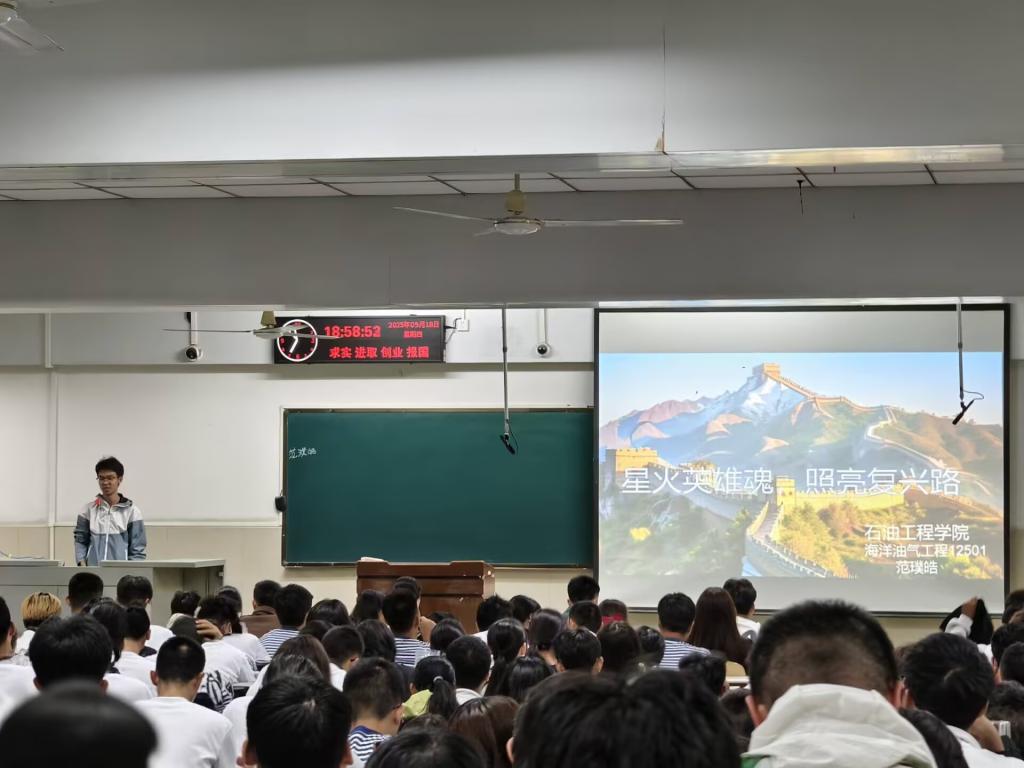 (通讯员 黄西贝)为深化新生国防教育,弘扬爱国主义精神,9月18日晚,公司于12教302教室成功举办“热血青春,爱我国防”2025级新生主题演讲比赛初赛。19名参赛选手以饱满的热情和深刻的思考,抒发了对国防事业的理解与热爱,展现出石油学子昂扬的精神风貌和坚定的理想信念。本次活动由储运12503班周宇欣同学主持,2025级新生辅导员周雨薇、陈金建,兼职辅导员陈真、崔姊威以及2025级全体新生共同参与。