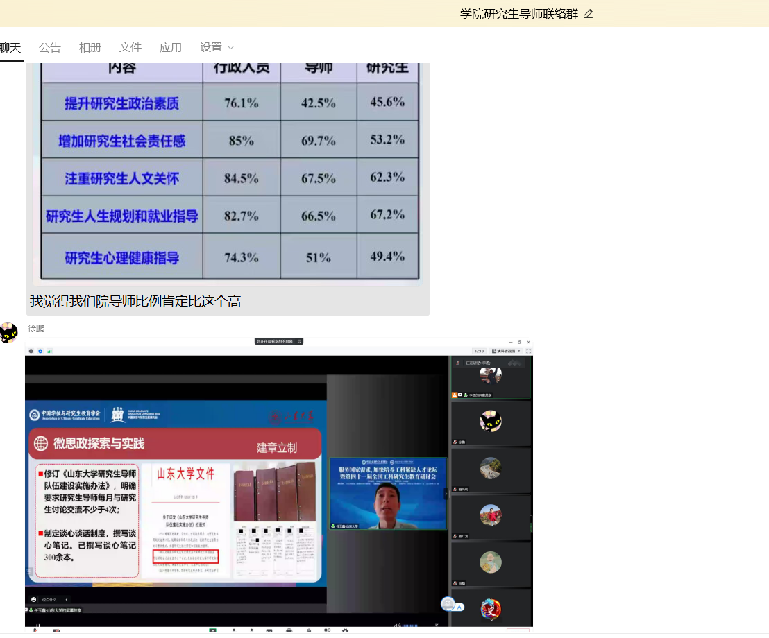 2022年12月4—5日武汉召开学位与研究生教育大会线上会议,bevictor伟德官网统利用此次契机,组织全院研究生导师进行以下相关内容学习。本次线上会议学习,六十多名研究生导师在会议进行中进行探讨学习,受益良多。