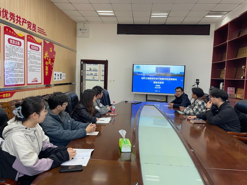 2024年12月2日下午,由张菲菲教授主讲的“求实导师学术沙龙——智能钻井模型及软件开发”在石油科技大楼C111举行。活动吸引了油气井工程方向的研究生参与,会上就智能钻井领域发展现状、应用和前景等进行深入讨论,师生互动热烈,学术氛围浓厚。