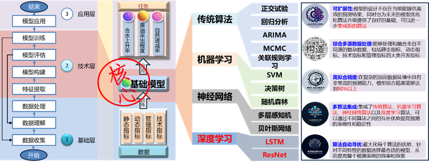 基于传统算法、机器学习、深度学习等多种模型框架及确立的主控影响因素,在大量模型数据训练的基础上,构建了全过程油田关键开发指标预测人工智能大模型,建立50个海上油田的工业私有化大模型,实现基于人工智能算法的海上油田关键开发指标的精准预测。